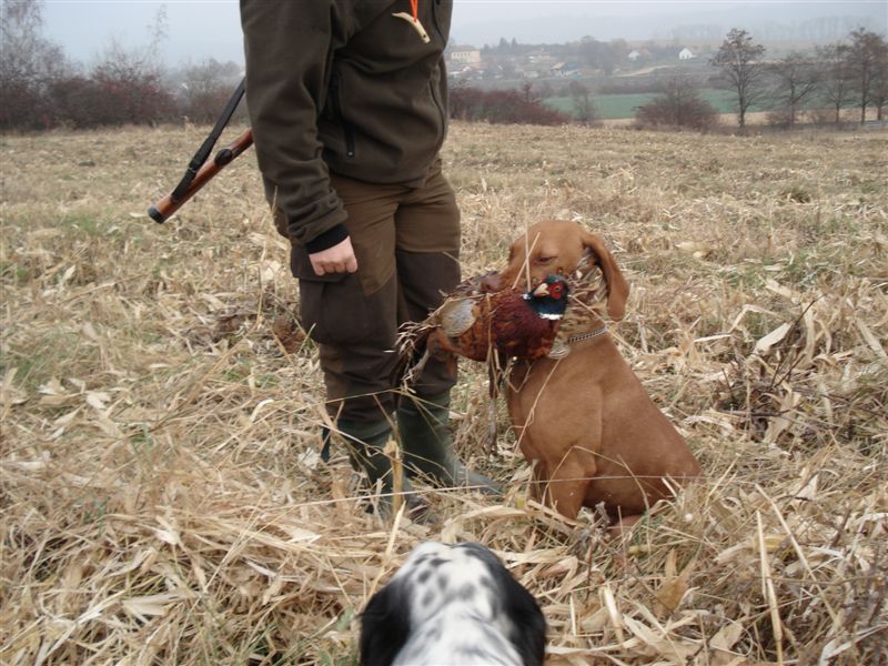 Od naší kamarádky Lucky jsme dostaly pozvání na hon v MS Podolí a tak jsme se s Vandou 20.11. vydaly ku Kolínu. Po menších komplikacích, kdy jsme nastoupily do špatného vlaku a dojely na otočku do Prahy (:D), jsme nakonec zdárně doputovaly do Kolína, kde už nás netrpělivě čekala Lucka. A od té doby šlo vše jako na drátkách, moc jsme si celou sobotu užily a na naši premiéru budeme dlouho vzpomínat. Hlavně Vanda byla ve svém živlu a bylo vidět, že si svoji roli náramně užívá. Po počátečním váhání zjistila, co se po ní chce, a pak už pracovala ukázkově, až panička koukala, kde že se to v tom psovi bere :). Krásně hledala, vystavovala a aportovala dva kohouty a jednoho zajíce. Na závěr jsme strávily příjemné chvilky v místním lokále, kde jsme probraly veškeré důležité maličkosti. Byla to bezva premiéra, moc děkujeme Lucce za tuto příležitost a budeme doufat, že si to zas někdy zopakujem :)