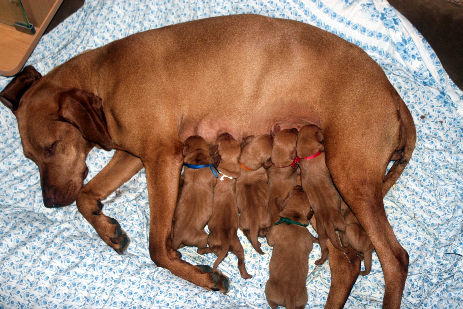 V pondělí 25.7.2011 v noci se naší Vandičce narodilo celkem 10 krásných zdravých štěňátek, 8 feneček a 2 pejsci :). Maminka i malí maďárci se mají skvěle, všichni si užívají první dny, většinu dne baští a spinkají. Jsme na ně moc pyšní, hlavně na naši statečnou Vandu, která svůj první porod zvládla jako by to měla už dávno natrénované :). Podrobnosti o celém vrhu přidáme co nejdřív.